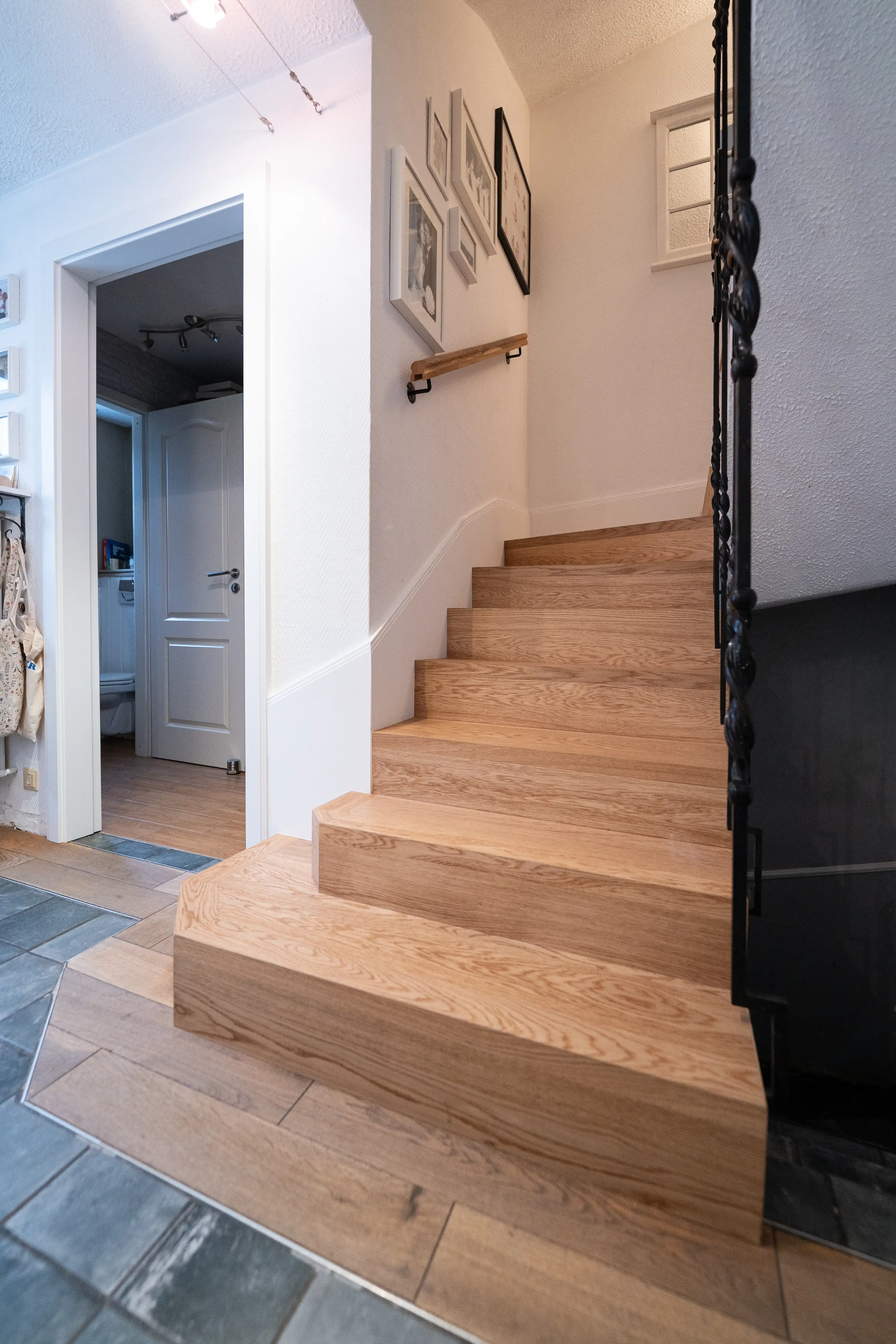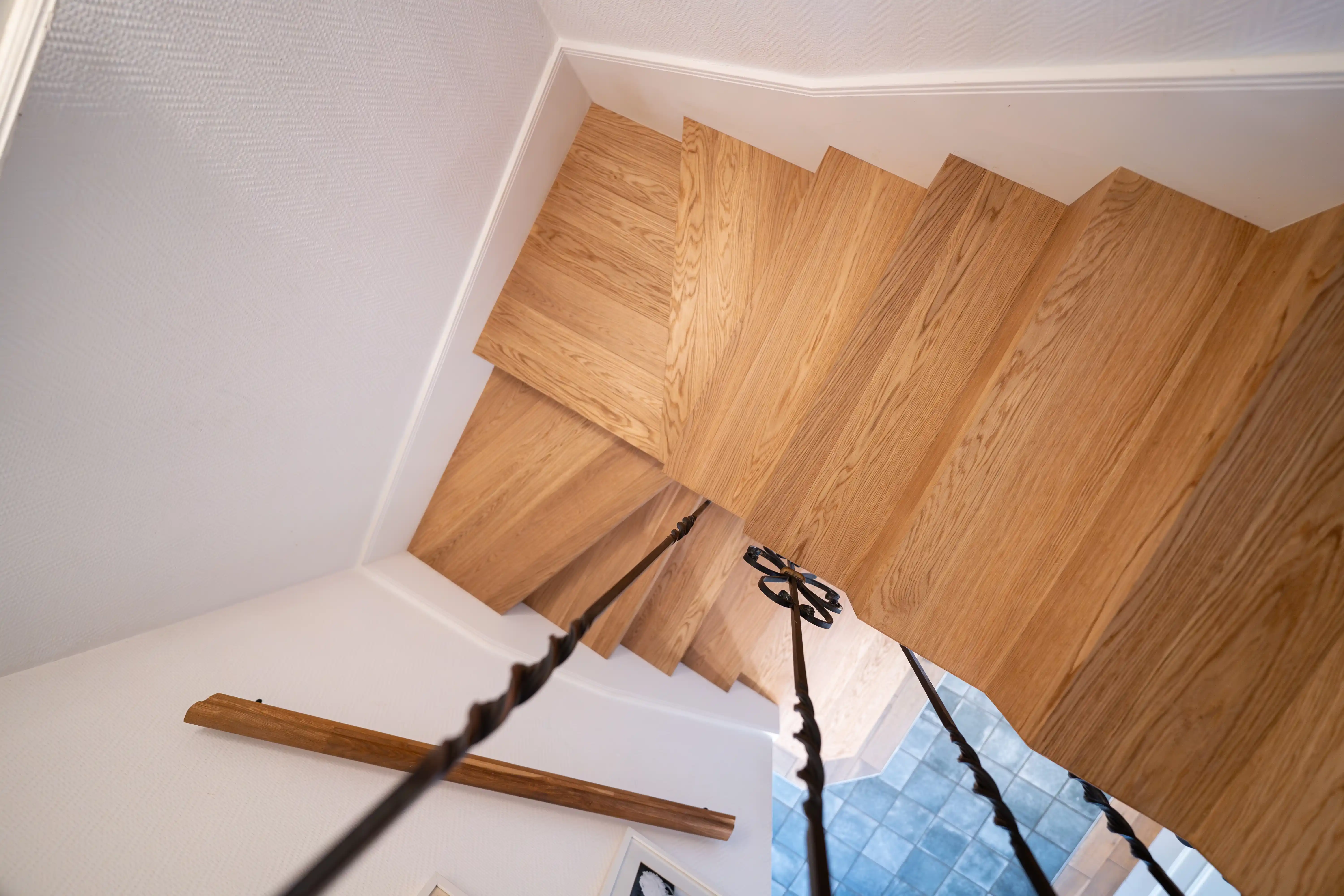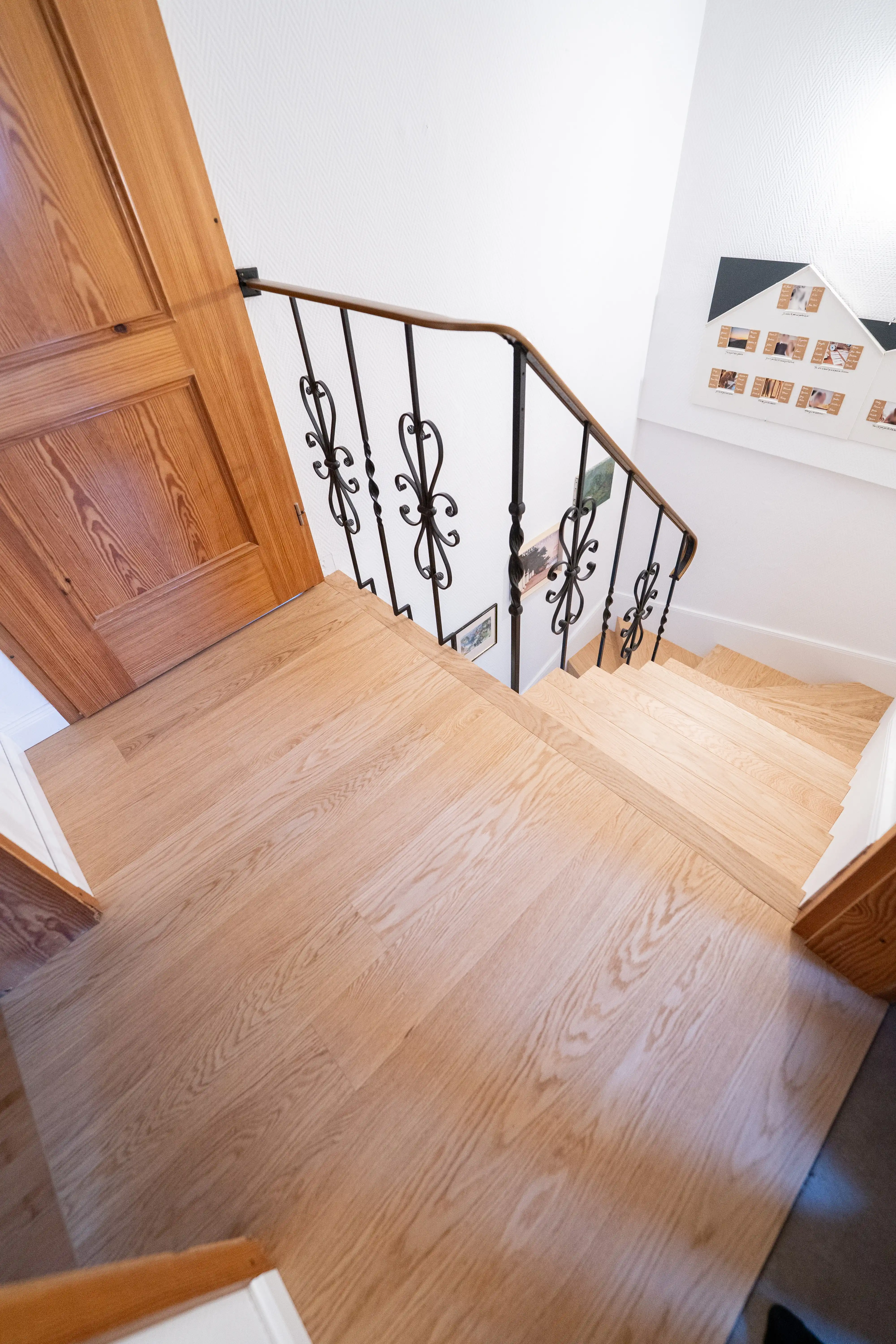 L’intervention s'est portée sur le recouvrement d’un escalier existant avec du parquet, permettant de moderniser cet élément central sans engager de rénovation globale des sols. Cette solution offre un excellent compromis entre transformation esthétique et maîtrise du chantier.